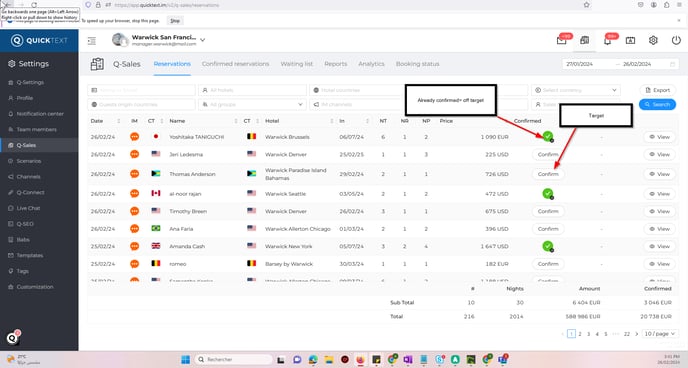 - Reservation confirmed in 2 steps: Will be tracked by pixel and attributed to Quicktext (Provided that the reservation request and the confirmation are less than 40 days apart which is usually the life shelf of the pixel cookies).