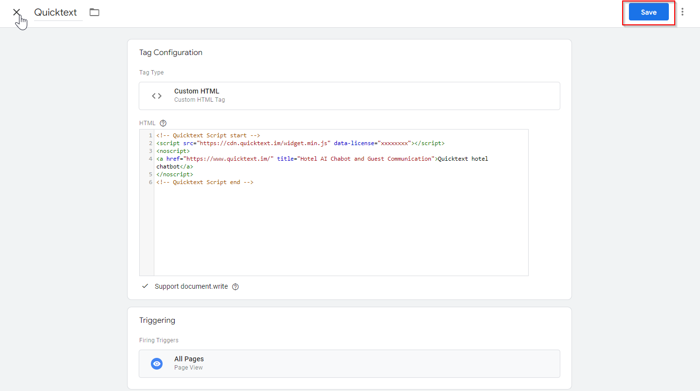 <script src="https://cdn.quicktext.im/widget.min.js" data-license="YOUR LICENCE CODE"></script>