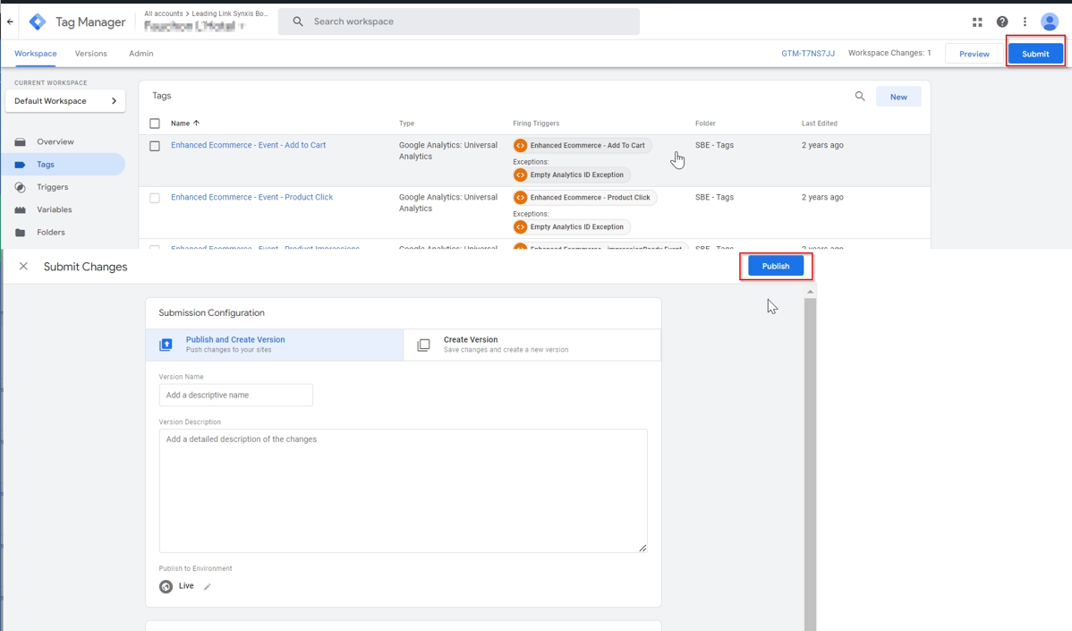 - Make sure that you are using the right Google Tag Manager container associated to the website via Google tag assistant