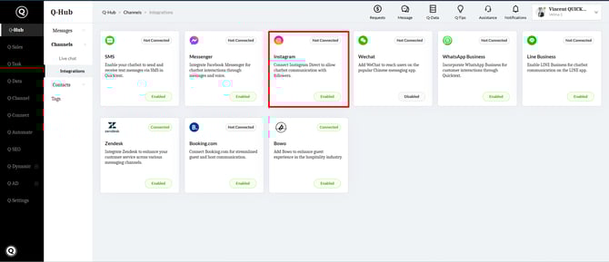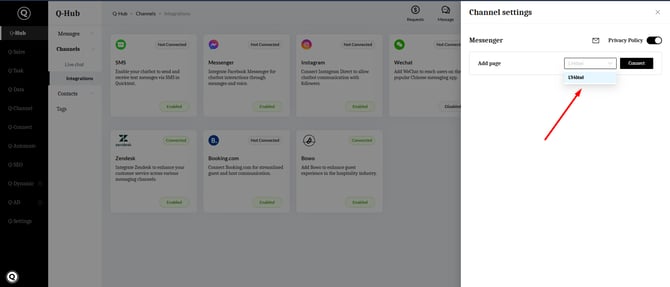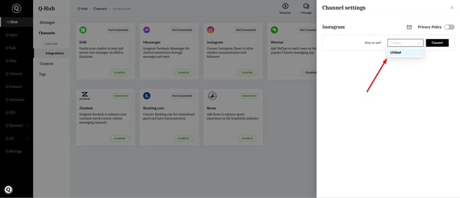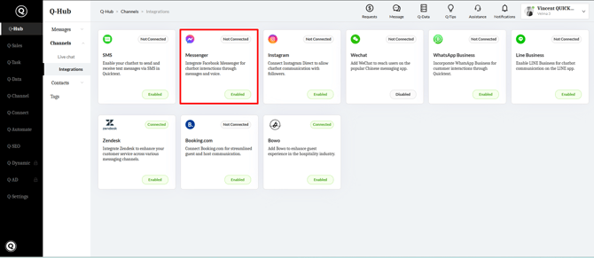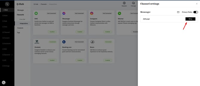 - Log in to your Quicktext account and navigate to Q-Hub Channels Integrations.