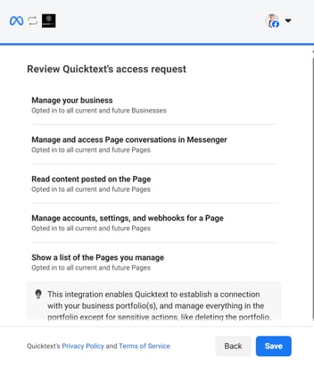 Connecting a Facebook Page to Quicktext