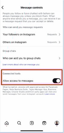 - Enable message access in Instagram settings on the mobile version:
