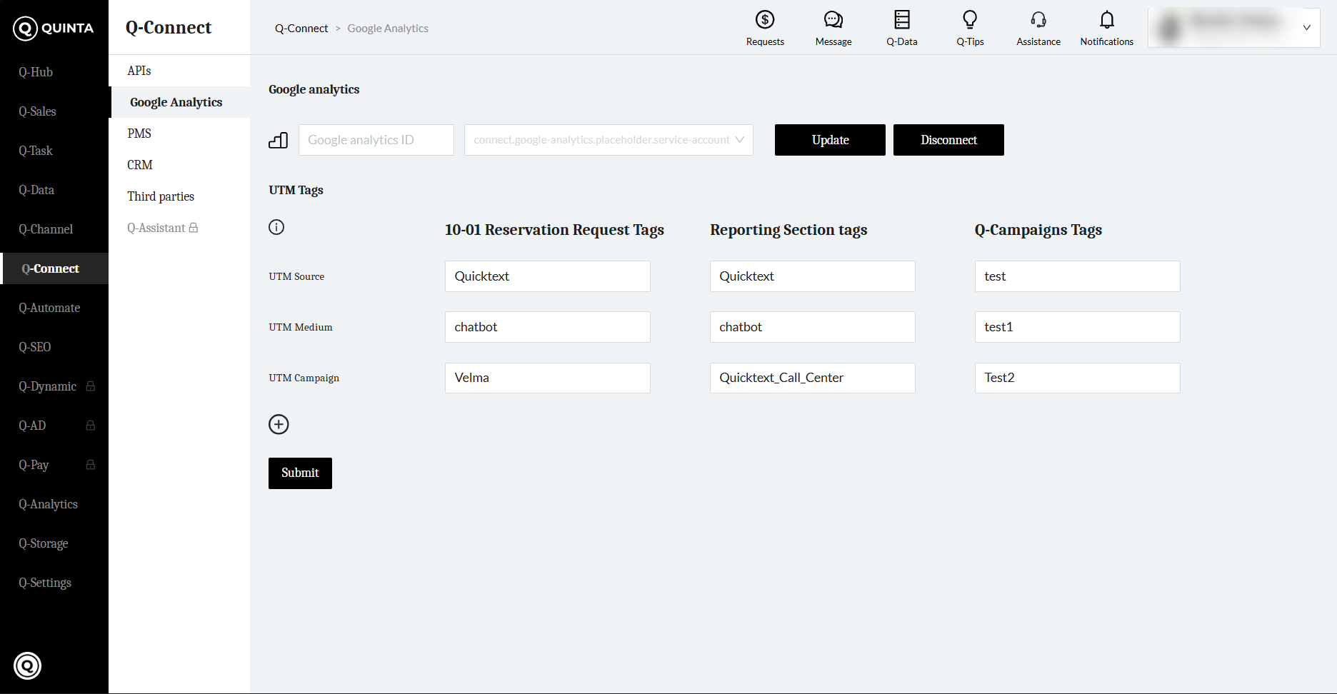 3/ Go to Q-Connect>Google Analytics https://console.quicktext.im/connect/google-analytics
