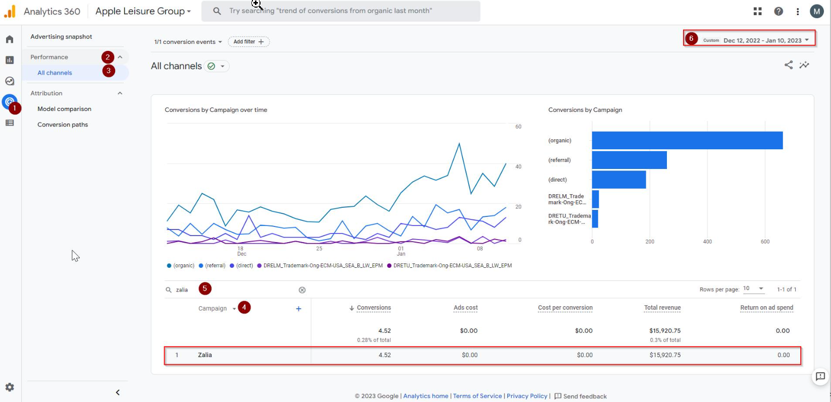 In order to test your integration, go to the GA4 account and you will find the campaign under Advertising>Performance>All Channel.