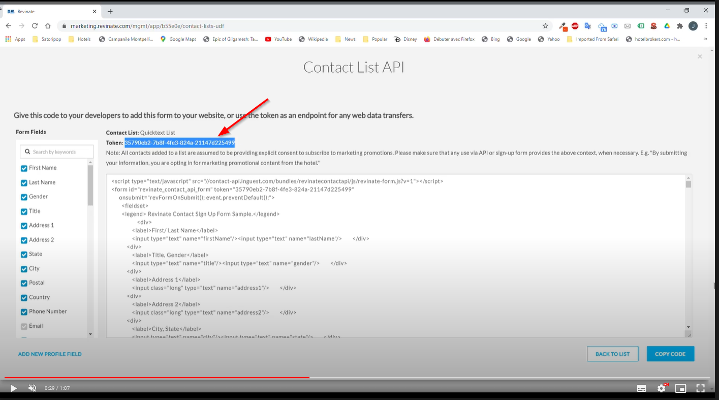 The hotelier has to save the token generated while creating the contact list and pass it on to his Quicktext AM