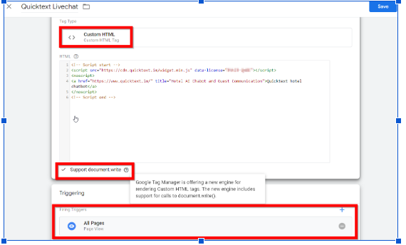 - Enable Support document.write in the tag configuration.